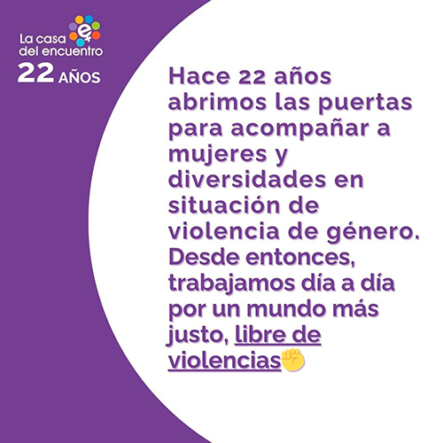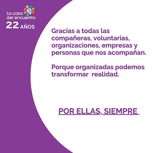 Reiteramos el compromiso de La Casa del Encuentro de continuar trabajando en forma articulada con el Estado, las empresas, los sindicatos, los movimientos sociales, siempre con un mismo objetivo: derribar al patriarcado y construir una sociedad más justa e igualitaria.