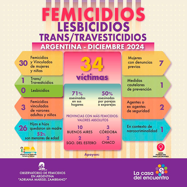 En Argentina en diciembre 2024 hubo 34 víctimas de violencia de género