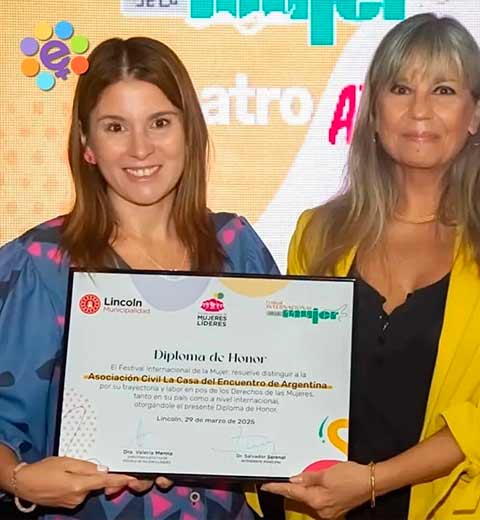 El Festival Internacional de la Mujer organizado por la Escuela de Mujeres Líderes, en su primera edición, resolvió distinguir conjuntamente con la organización Cotidiano Mujer de Uruguay creada en 1985 y la Red Chilena contra la Violencia hacia las Mujeres de Chile creada en 1990, a la Asociación Civil La Casa del Encuentro de Argentina por sus 22 años de lucha en favor de los derechos de las mujeres tanto en el país como junto a organismos internacionales, otorgándole un Diploma de Honor al respecto.