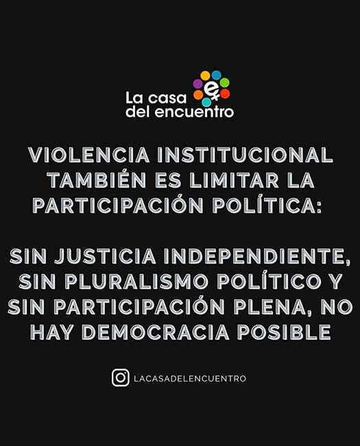 Con la autoridad que nos otorga el camino recorrido repudiamos enérgicamente los conceptos vertidos tanto por el Presidente de la Nación como del Ministro de Justicia, para quienes el género es una “joda que se usó como negocio y arma extorsiva” y por lo tanto planean, entre otras cosas, eliminar la figura de femicidio (homicidio en contexto de violencia de género) del Código Penal.