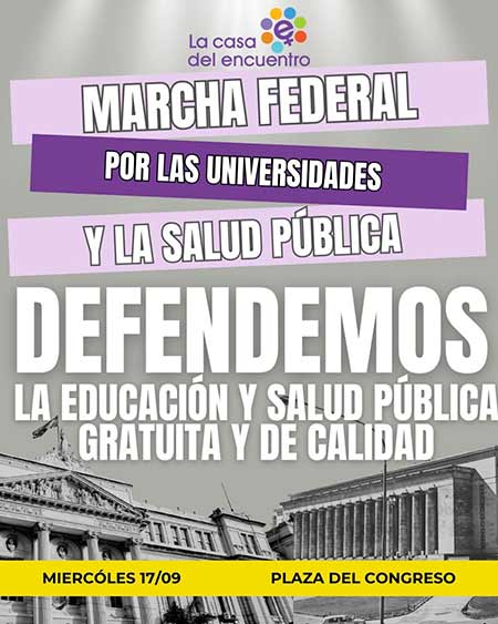 Desde La Casa del Encuentro adherimos a la Marcha Federal por las universidades y la salud pública.