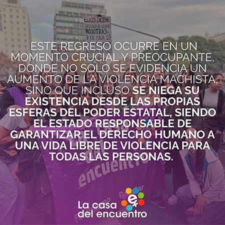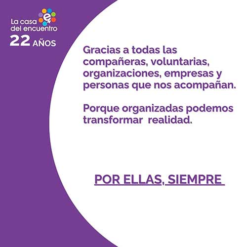 Desde La Casa del Encuentro seguimos trabajando cada día por una sociedad más justa, libre de violencia y explotación.