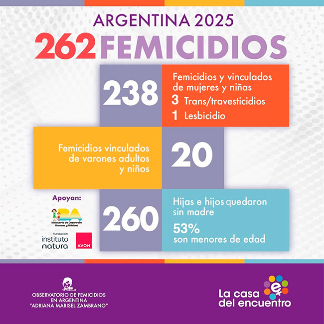 El Observatorio "Adriana Marisel Zambrano" coordinado por la Asociación Civil La Casa del Encuentro presenta los datos consolidados de su Informe Anual 2025.