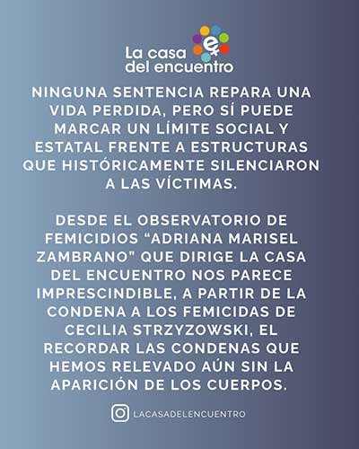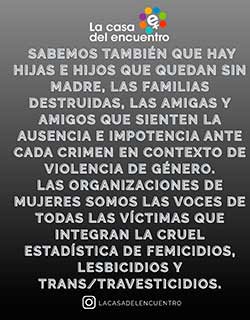 Desde nuestro espacio continuaremos nombrándolas para que no las olviden y se haga justicia