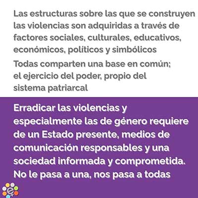 ✅ Este día, y todos los días, debemos visibilizar las violencias, micro y macro, en todos los ámbitos en los que desarrollamos nuestras vidas; las responsabilidades de quienes habilitan a que esto continúe sucediendo sin actuar y la obligación de cada una de nosotras y nosotros de involucrarnos como parte de una sociedad comprometida para no repetir ni replicar.